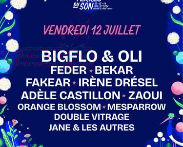 Nous retrouverons notamment Bigflo & Oli, Feder, Adèle Castillon, Zaoui, Gazo, Disiz, Dionysos, Trinix, Justice, Jain, Mass Hysteria, Santa... et bien d'autres encore.